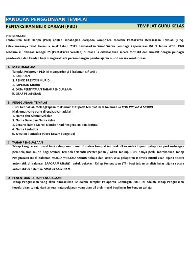 Panduan Pengisian Templat Pelaporan Pentaksiran Bilik Darjah Pbd 2018
