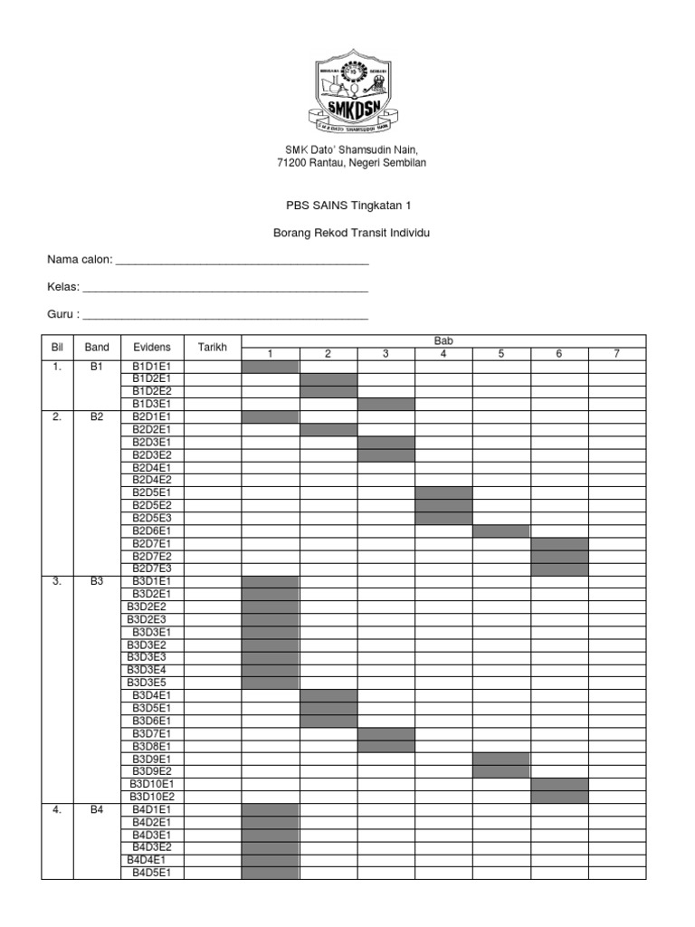 Borang Transit Pbd Sains Tingkatan 2 Englshmila
